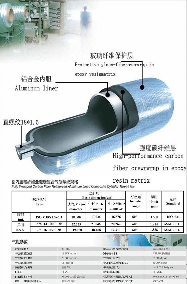 金盾6.8L正壓式空氣呼吸器碳纖維復(fù)合氣瓶